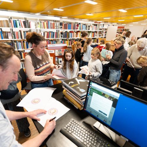 Propfyldt sal med læseglade mennesker. Foto: Mikkel Arnfred